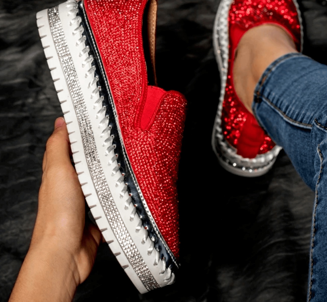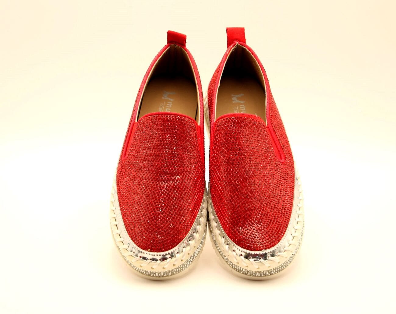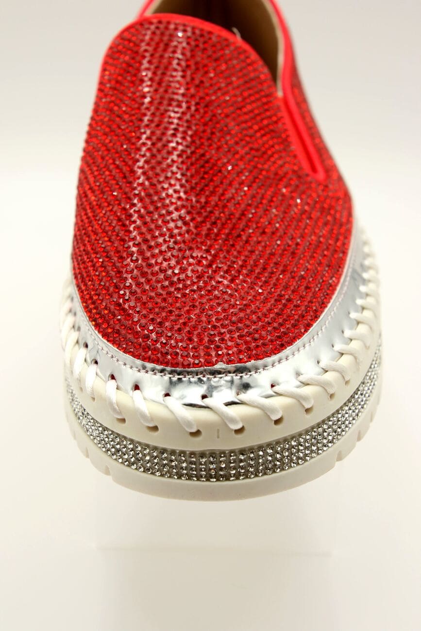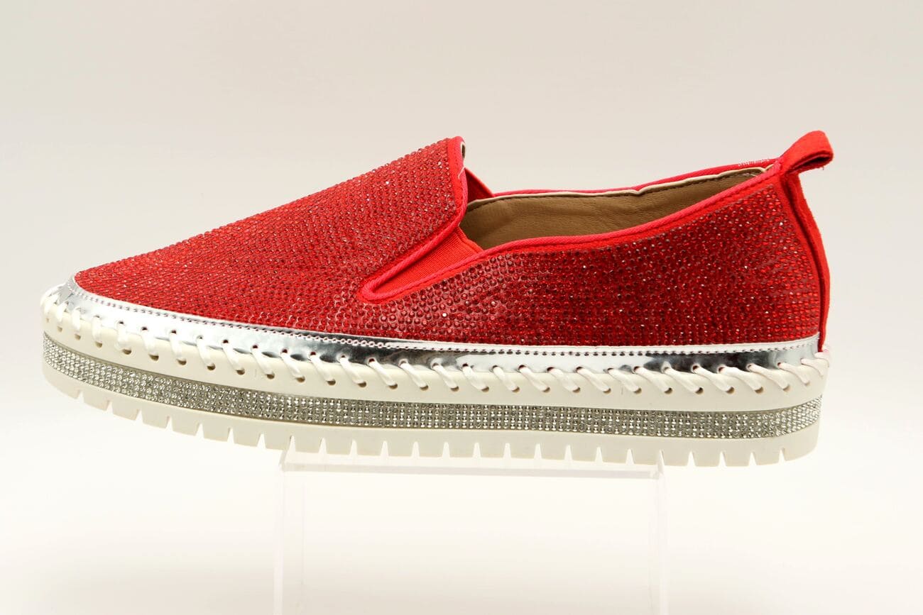 Diese auffälligen Schuhe Loafer Rot Strass passen ideal zu Deinem sportlichen Look. Der neueste Trend diesen Sommer. Einerseits sind sie optisch auf jeden Fall ein Hingucker und andererseits passen diese Sneaker zu vielen Outfits.