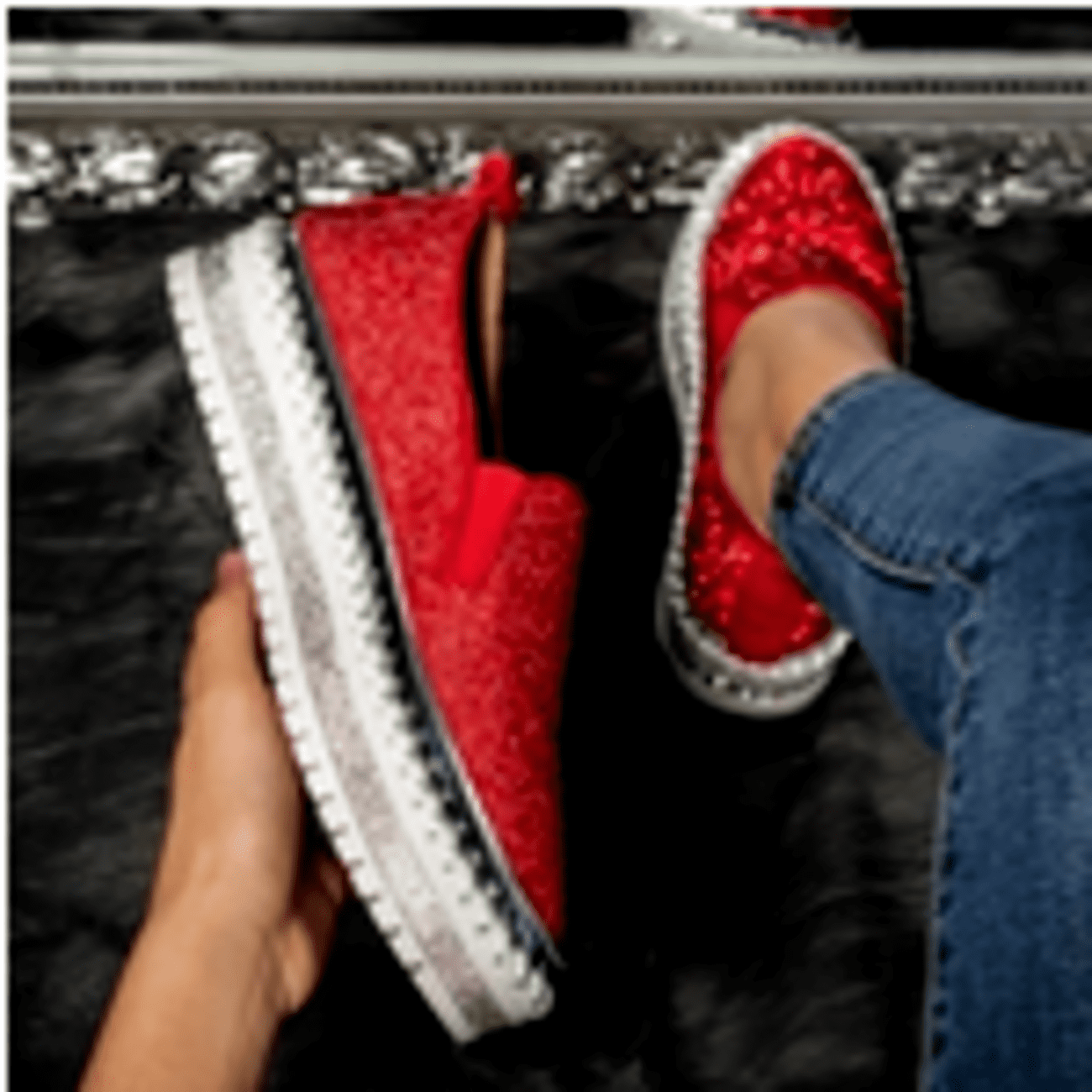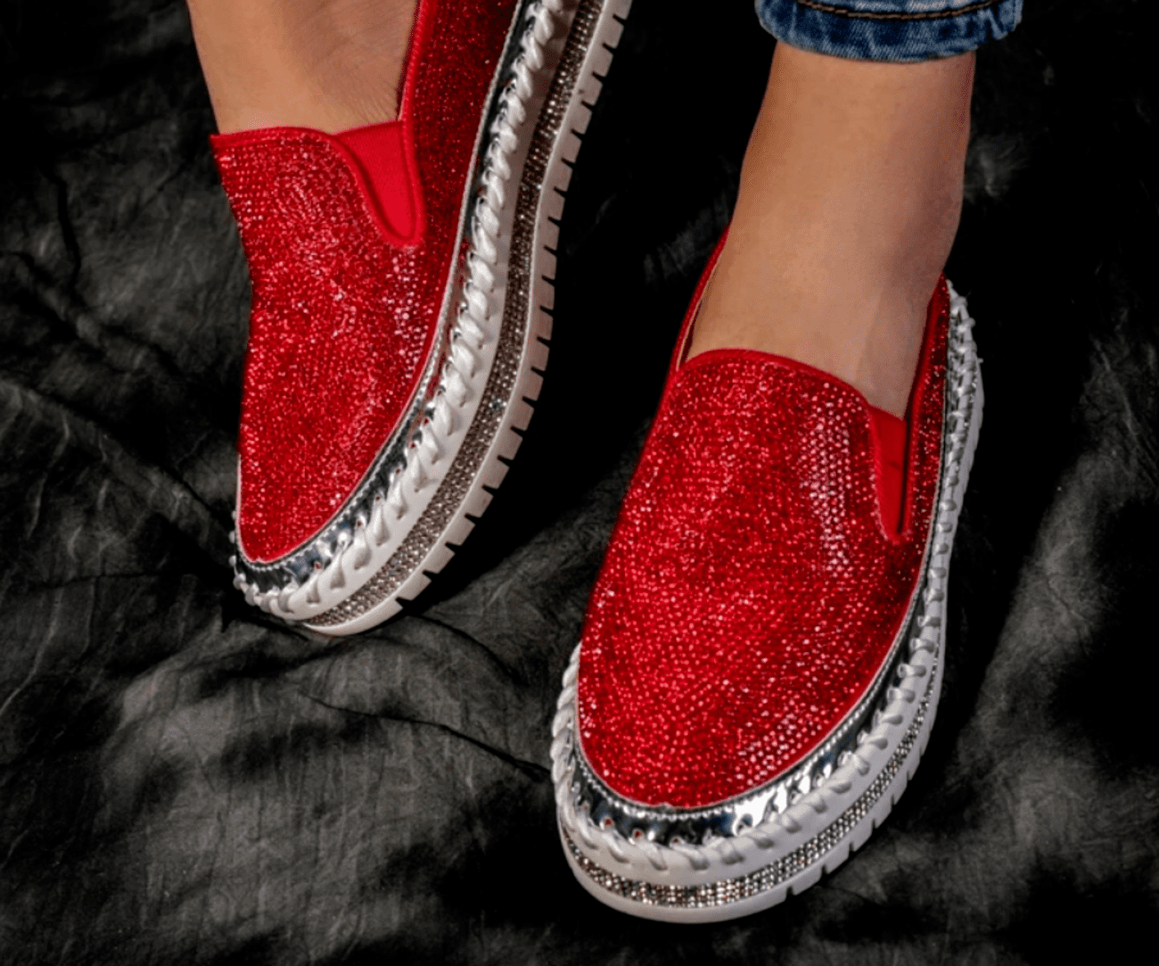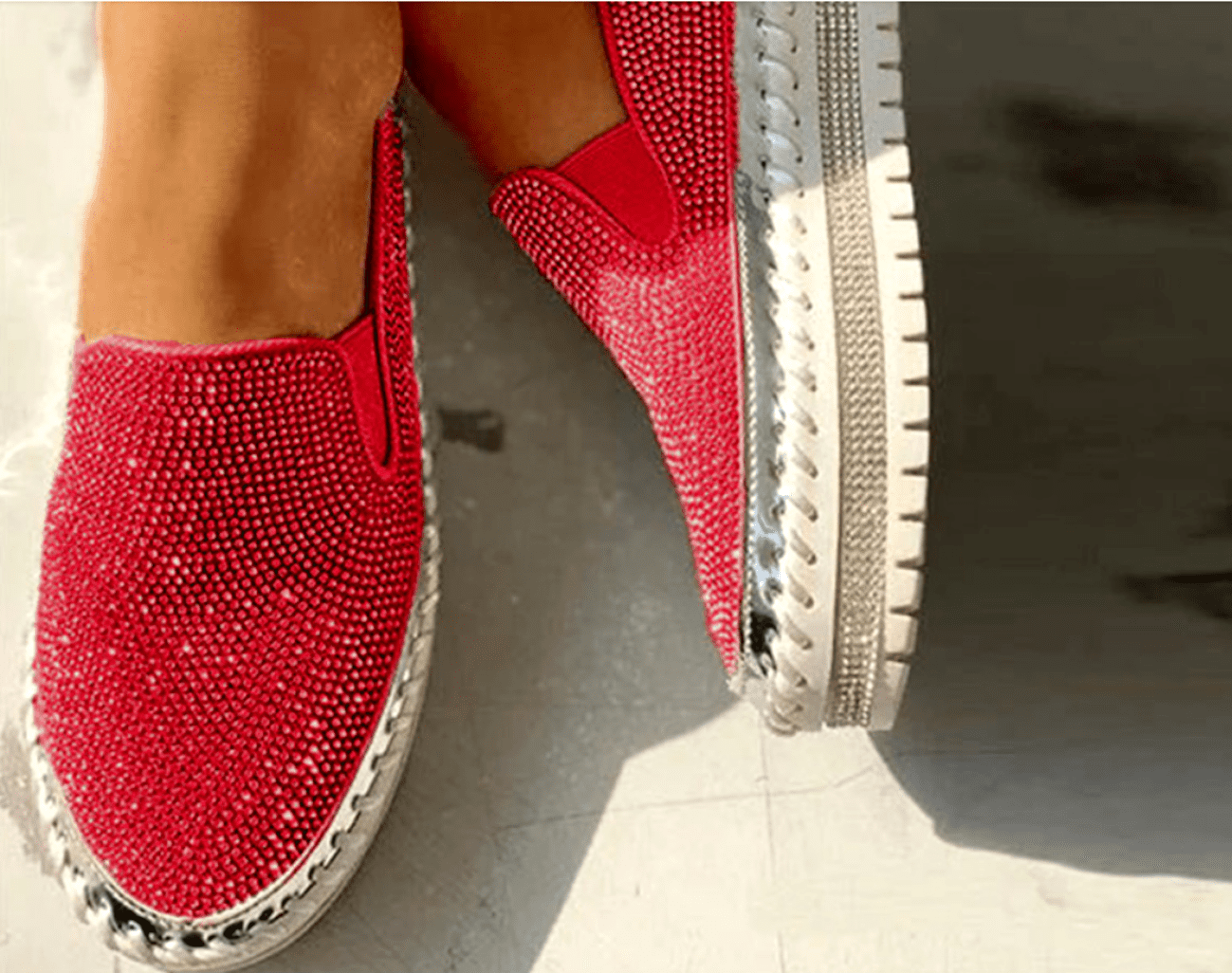 Diese auffälligen Schuhe Loafer Rot Strass passen ideal zu Deinem sportlichen Look. Der neueste Trend diesen Sommer. Einerseits sind sie optisch auf jeden Fall ein Hingucker und andererseits passen diese Sneaker zu vielen Outfits.